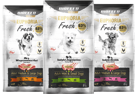 EUPHORIA jest polską marką łączącą miłość do zwierząt, szacunek do ich prawdziwej natury i nowoczesną technologię. Specjalistyczna wiedza z zakresu prawidłowego żywienia psów i kotów pozwala nam tworzyć najwyższej jakości karmy wspierające zdrowie i prawidłowy rozwój zwierząt na każdym etapie ich życia. Nie pozostawiamy miejsca na żadne kompromisy – każdy nasz produkt jest starannie zbilansowany, złożony z najlepszych, lekkostrawnych surowców i euforycznie smaczny.